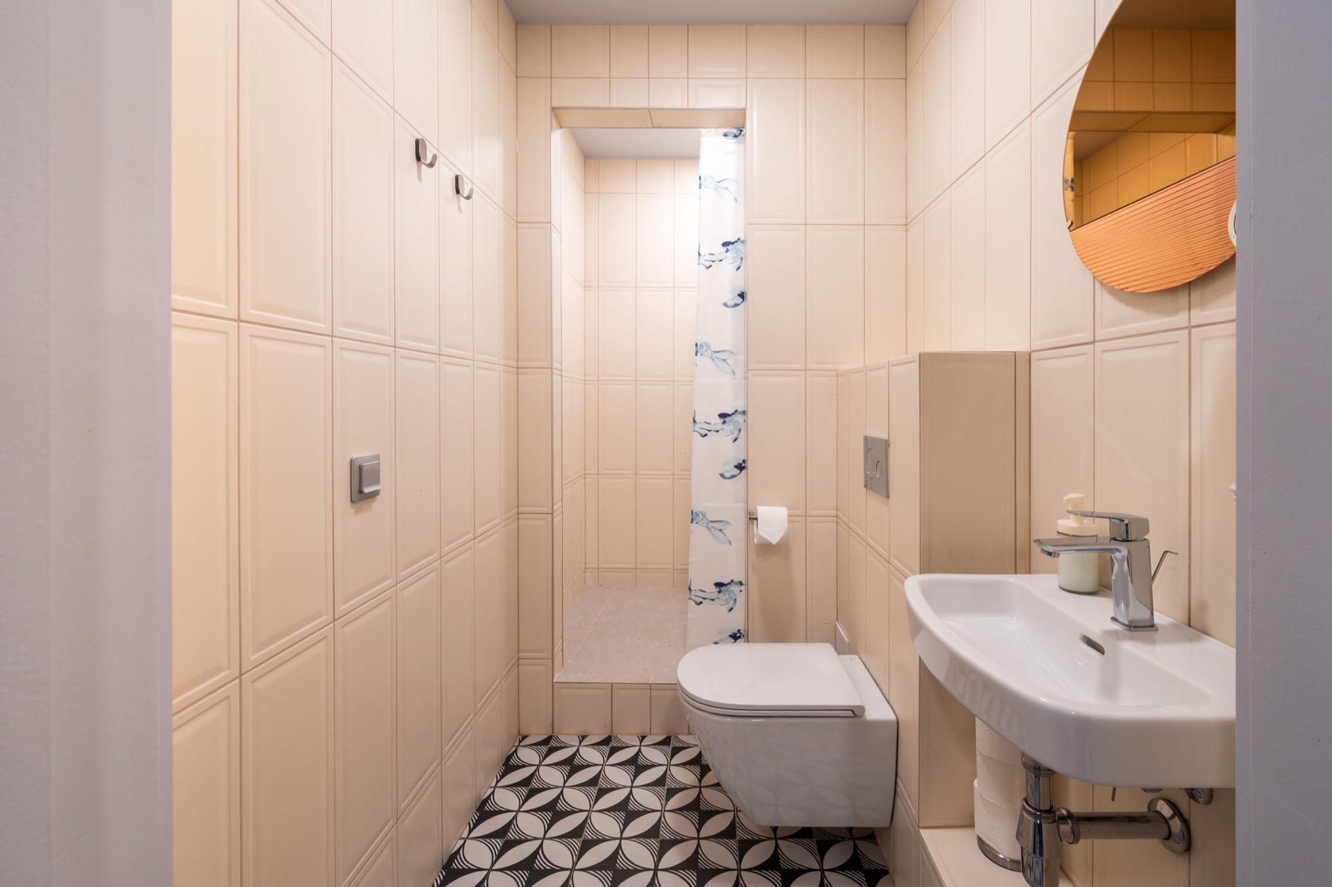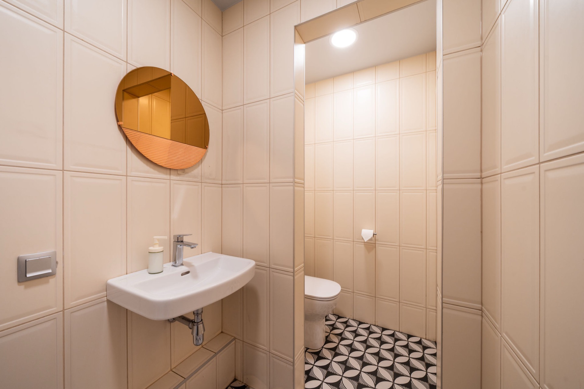 Apartment located entirely in the basement, newly renovated with high-quality materials.